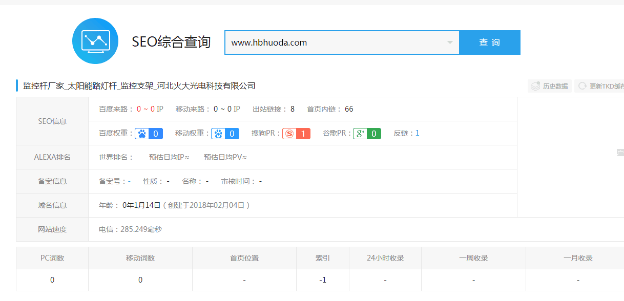SEO优化人士将网站利用site:www.hbhuoda.com的形式查看了网站的内容的收录情况,起初网站只收录了网站的首页,内页都没有进行收录。我们技术人员利用sitemap、百度推送以及站长统计的代码放入网站zhong,使之网站内页能够让百度蜘蛛抓取全部页面以便持续收录提升排名。